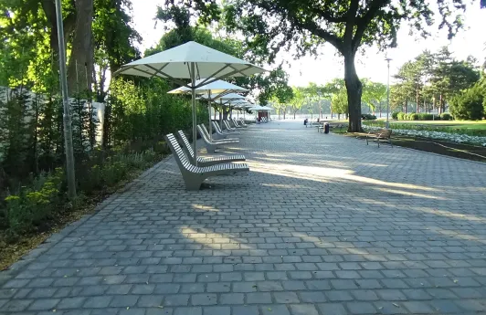 Meglévő utak burkolatának cseréje. A gerincutat követő pesti oldali sétány kavics+aszfalt burkolat átalakítása egységes Terraway burkolattá, lapkő burkolatok cseréje stabilizált burkolattá, néhány közlekedési felület, bővítése és felújítása.